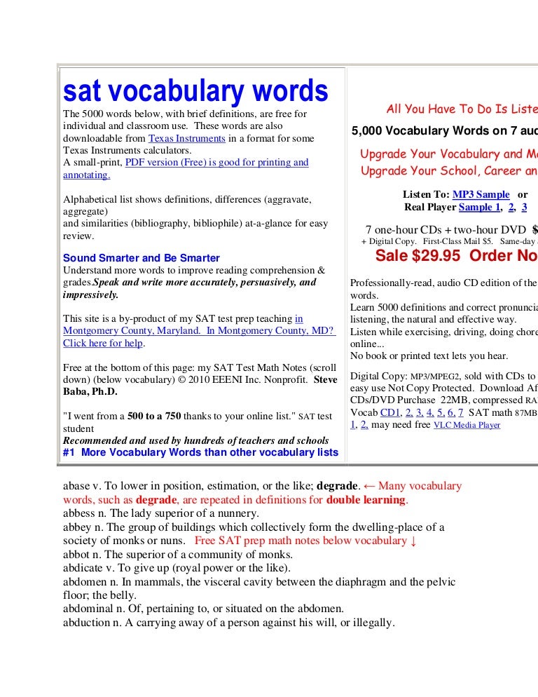 These words are vitalcomputer analysis shows that they occur test after test on actual SATs. ACCOST V to approach and speak to first 2. These tests are not in any affiliation with The College Board.